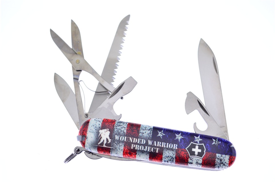 This 3 1/2" American Flag Custom Multifunction Tool by Victorinox is a great choice for any collector. This Stainless Steel Tool has functions like two Bottle Openers, Serrated and Standard Blades, Scissors, Keychain, and More. This Swiss Made knife also supports the Wounded Warrior Project! Quantities are limited to get yours today!