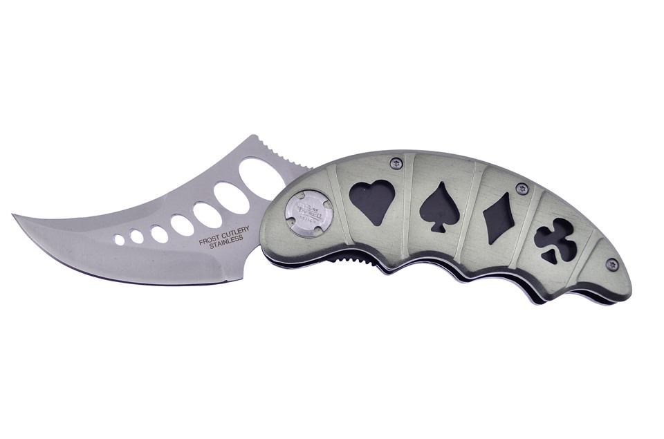 This Frost Cutlery 4 1/2" Stainless Steel Folder is a customer favorite! With Decorative Ergonomic Handle, Stainless Steel Blade, and Metal Pins, this item is going to sell like hotcakes, so get yours now.