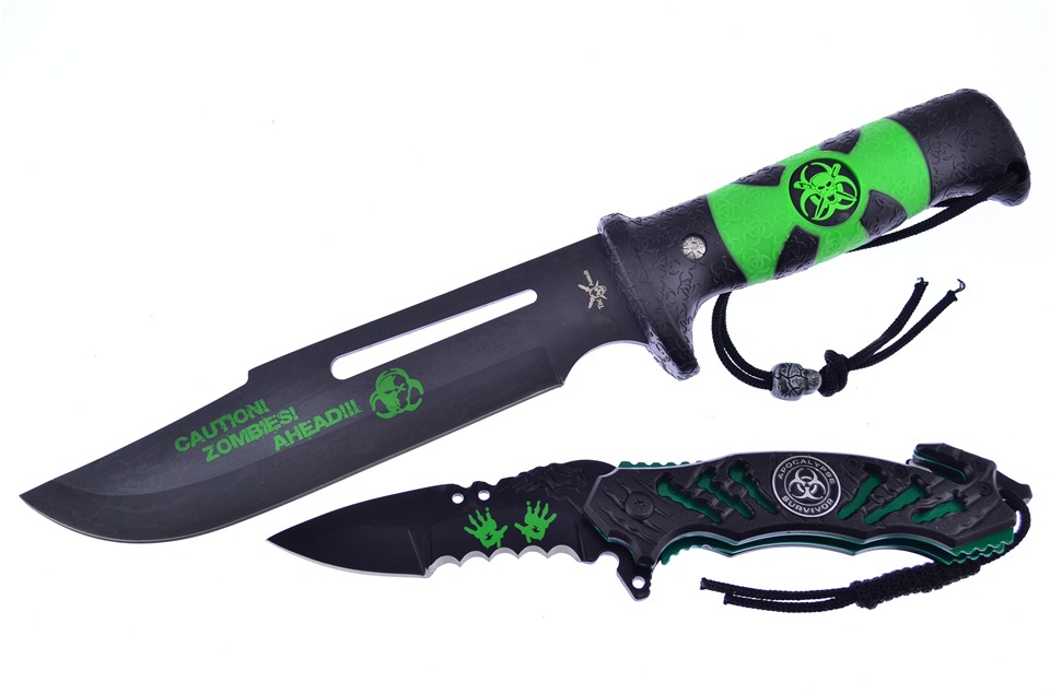 Here's a value you really don't want to miss. You'll get one of the 12" Green Composite Bowies and one of the 5" Black Aluminum Snapshot Tacticals, featuring Assisted Opening Mechanism. You won't find a lower price anywhere!