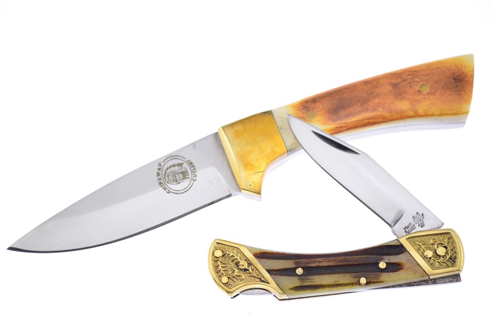 Here's a set of knives no collector will want to miss. You'll get one of the 3" Second Cut Bone Bear Hunters, one of the 6 1/4" Torchbone Bone Skinners, featuring Brass Guard. Not all of these components will stay in stock, so throw this in your shopping cart now!