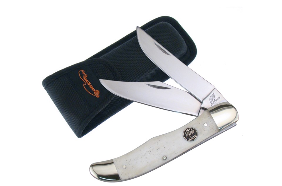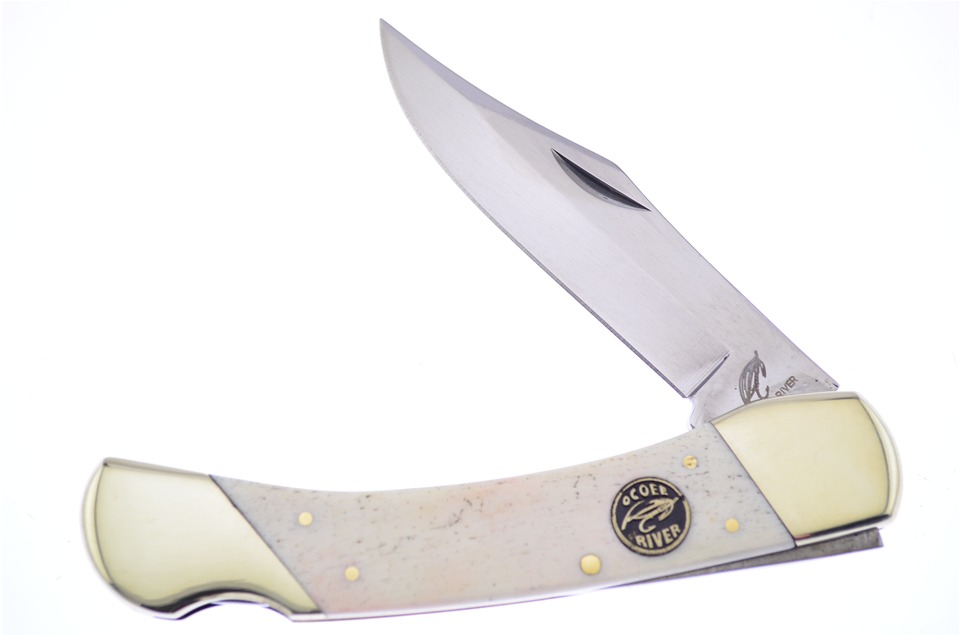 Here's a value you really don't want to miss. Included in this set is one of the 5" White Smooth Bone Bear Claws, one of the 5 1/4" White Smooth Bone Folding Hunters with Stainless Steel Blade, one of the 4" White Smooth Bone Barlows, featuring Brass Pins, and one of the 4 1/4" White Smooth Bone Trappers with Brass Pins. You won't find a lower price anywhere!
