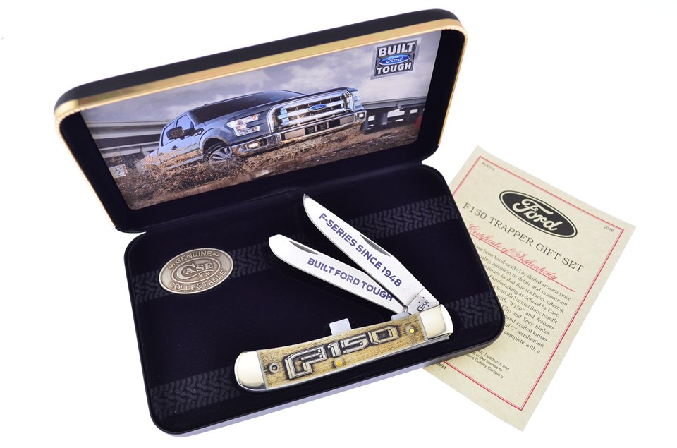 This 4 1/8" Ford F150 White Smoothbone Trapper is another great piece from Case. This collectible knife set features Etched Surgical Steel Blades, Nickel Silver Bolsters, Decorative Bone Handle, and comes complete in a Decorative Collector's Box with Certificate of Authenticty. We only have a couple of these, so act quickly to add this to your collection!
