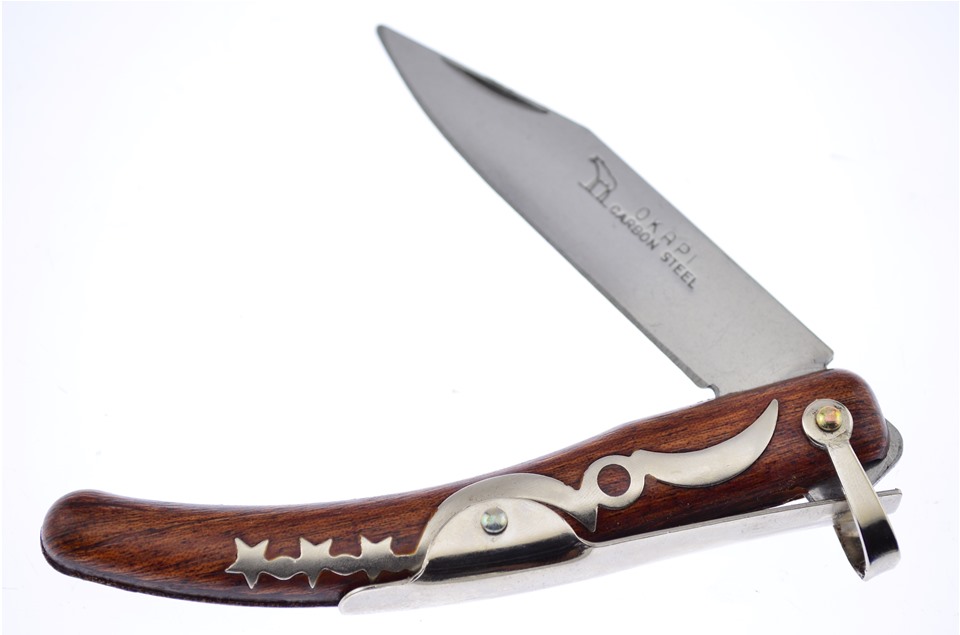 Customers can't get enough of the Okapi 4 3/4" Cherry Wood Baby Sable! With Decorative Handle, Carbon Steel, and Keychain Loop, this is going to be flying off the shelves, so don't miss your chance to get one!