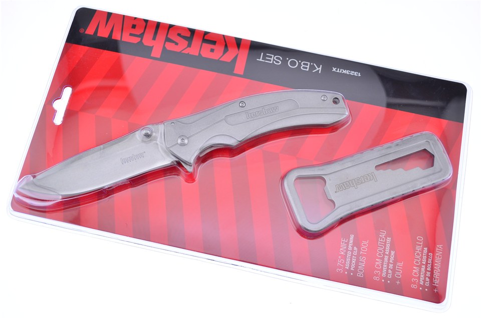 Introducing the 4 7/8" Stainless Steel Folder Set by Kershaw. With details like Thumb Stud, Bottle Opener, and Stainless Steel Blade, you need to pop this in your cart now while supplies last!