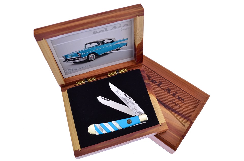 This 4 1/8" Turquoise Trapper by Hen & Rooster is a great choice for any collector. With details like Nickel Silver Bolsters, Stainless Steel Blade, and Etched Blade, this item is going to sell like hotcakes, so get yours now.