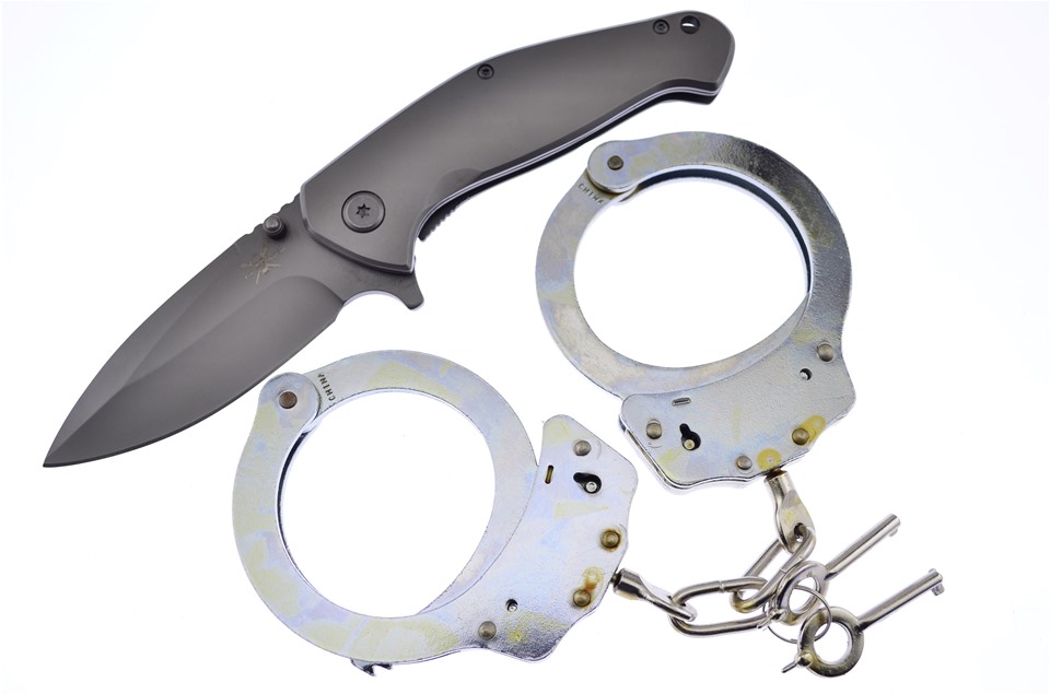 This set is a great addition to any collection. You'll receive one of the Silver Handcuffss and one of the 4 1/2" Titanium Snapshot Tacticals with Assisted Opening. Sets like these go fast, so get yours while you can!
