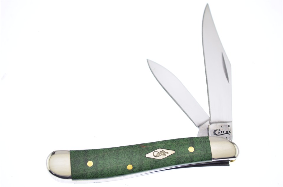 This set by Case is a great addition to your collection! You'll get one of the 4 1/8" Green Curly Maple Wood Trappers, one of the 3 1/2" Green Curly Maple Wood Teardrops, one of the 2 7/8" Green Curly Maple Wood Peanuts with Stainless Steel Blade, one of the 3 1/2" Green Curly Maple Wood Mini Trappers with Nickel Silver Bolsters, one of the 3 5/8" Green Curly Maple Wood Medium Stockmans. Sets like these go fast, so get yours while you can!