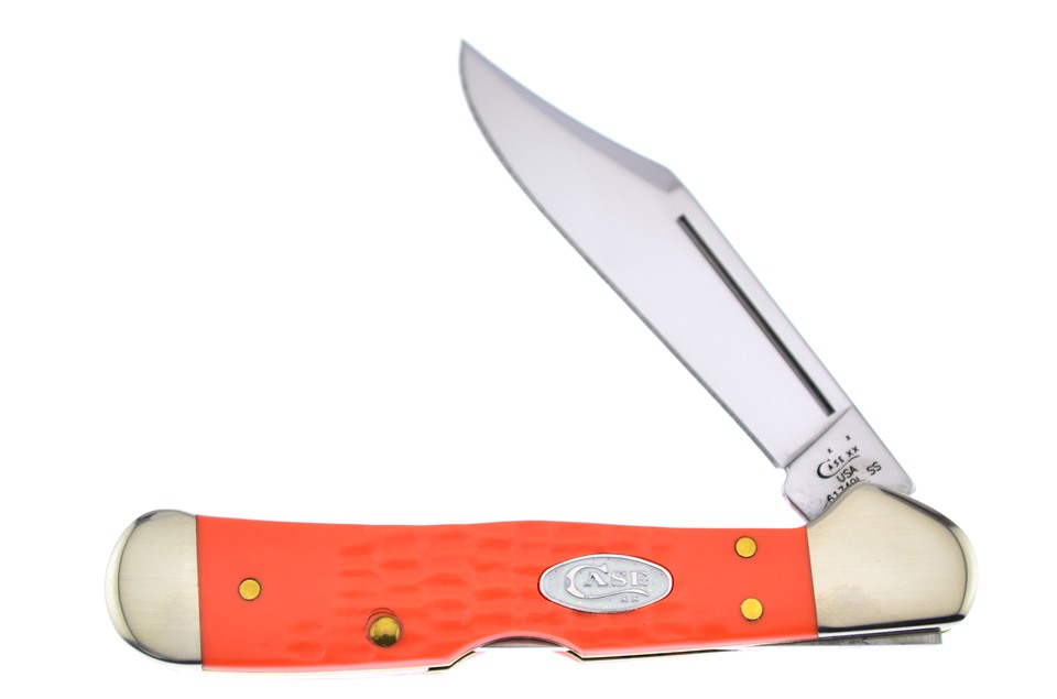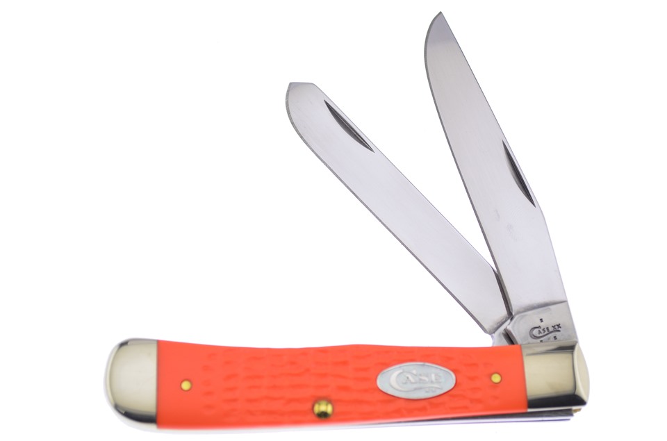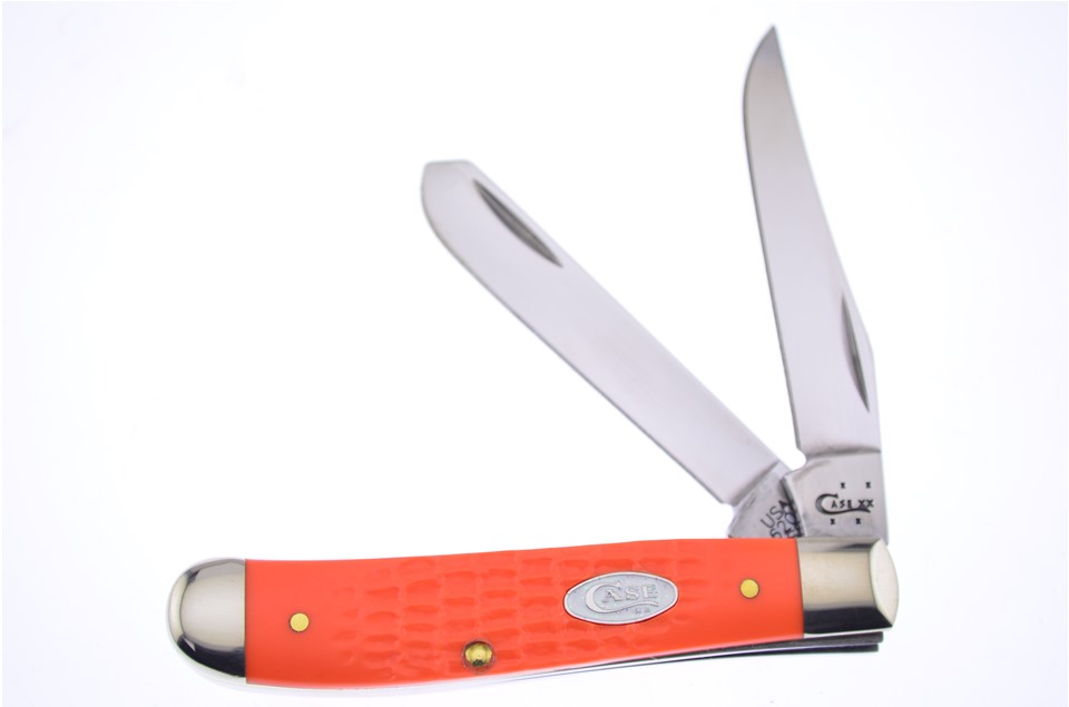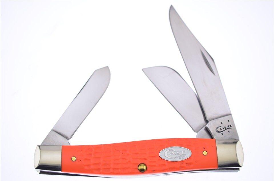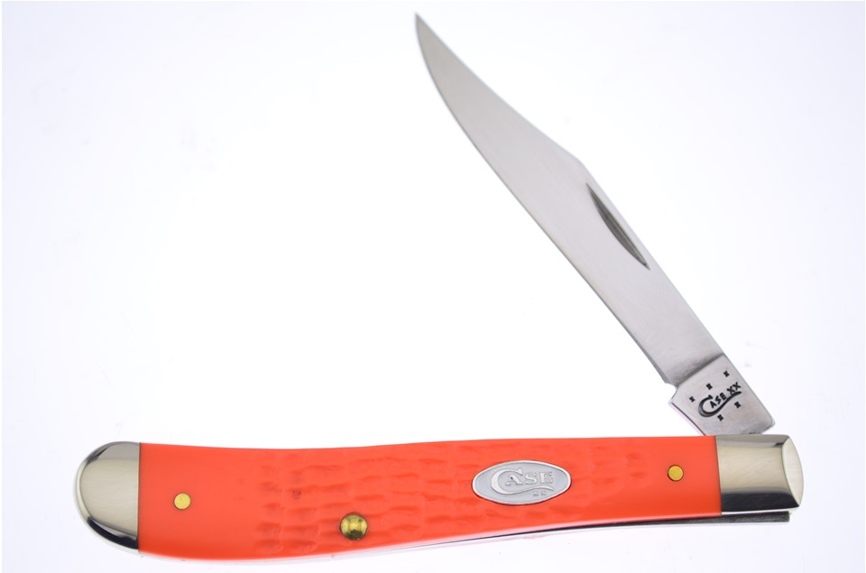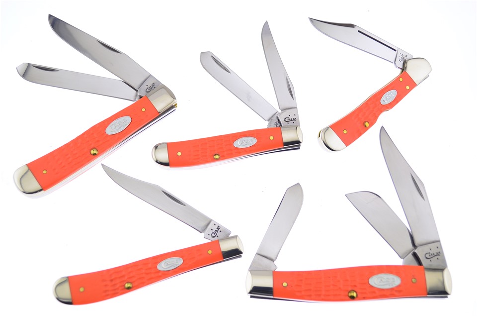 Here is a set of Case knives you don't want to miss! You'll receive one of the 4 1/8" Sparxx™ Orange Jigged Synthetic Trappers, one of the 4 1/8" Sparxx™ Orange Jigged Synthetic Slimline Trappers with Surgical Steel Blade, one of the 4 1/4" Sparxx™ Orange Jigged Synthetic Large Stockmans, one of the 3 1/2" Sparxx™ Orange Jigged Synthetic Mini Trappers, and one of the 3 5/8" Sparxx™ Orange Jigged Synthetic Mini Copperlocks. Not all of these components will stay in stock, so throw this in your shopping cart now!