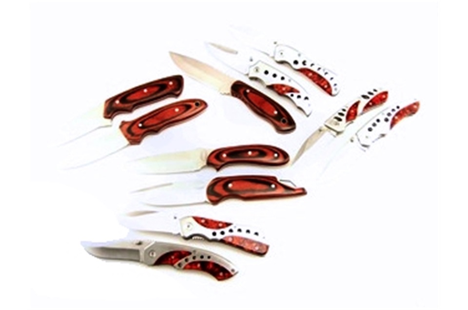 This set by Frost Cutlery is a great addition to your collection! You'll get one of the 4 1/2" Metal / Candy Apple Red Combination Tactical Folders, one of the 4 1/2" Metal / Candy Apple Red Combination Tactical Folders, featuring Liner Lock, one of the 4 1/2" Metal / Candy Apple Red Combination Tactical Folders, featuring Liner Lock, one of the 9" Red/Black Wood Hunters, one of the 9" Red/Black Wood Bowies with Nylon Sheath, one of the 9" Red/Black Wood Hunters, featuring Finger Groove, and so much more! Sets like these go fast, so get yours while you can!