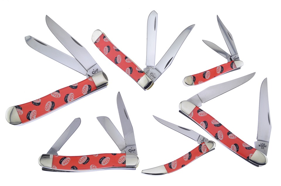 Here's a set of knives no collector will want to miss. You'll receive one of the 3" Orange Corelon® Small Toothpicks, one of the 3 7/8" Orange Corelon® Muskrats with Thumbnail Pull, one of the 3 1/2" Orange Corelon® Mini Trappers with Nickel Silver Bolsters, one of the 2 7/8" Orange Corelon® Peanuts with Thumbnail Pull, one of the 4 1/8" Orange Corelon® Trappers, featuring Thumbnail Pull, one of the 3 5/8" Orange Corelon® Medium Stockmans with Stainless Steel Liner, and so much more! Sets like these go fast, so get yours while you can!