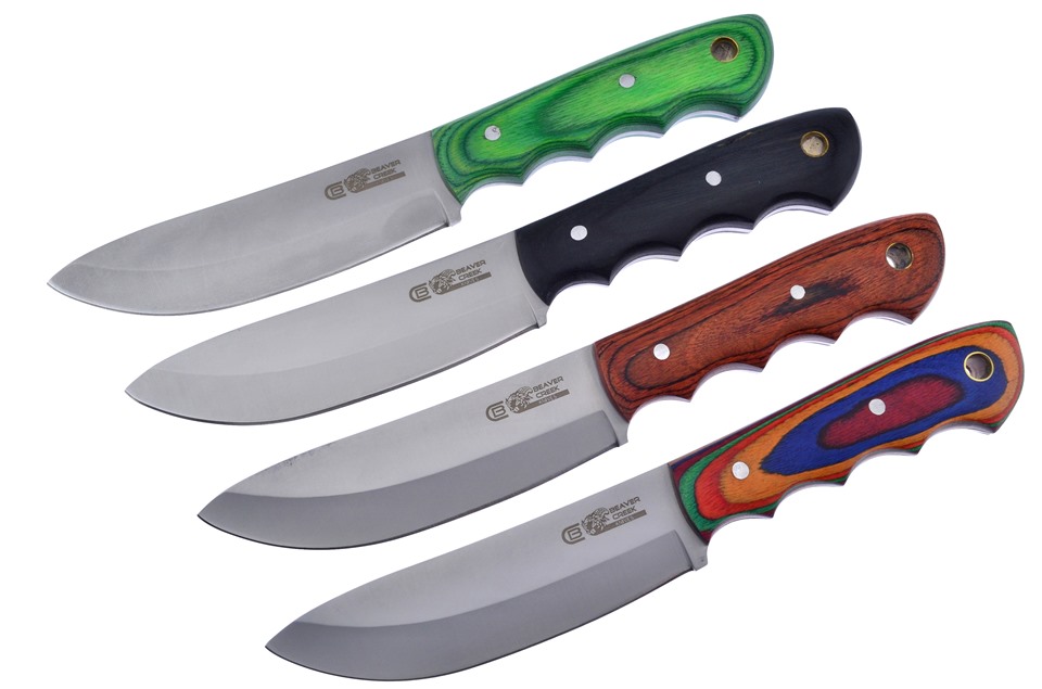 This set by Beaver Creek is a great addition to your collection! Included in this set is one of the 9" Black Pakkawood Skinners, one of the 9" Frostwood Skinners with Nylon Sheath, one of the 9" Green Pakkawood Skinners with Lanyard Hole, and one of the 9" Pakkawood Skinners. You won't find a lower price anywhere!
