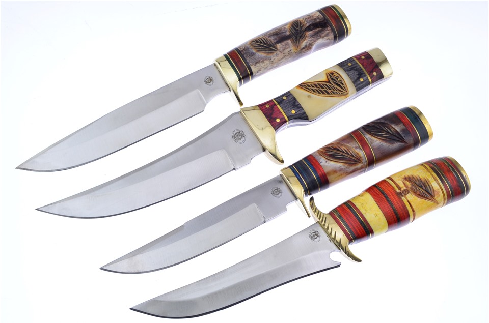 Here's a set of knives no collector will want to miss. You'll get one of the 12" Wood/Bone Combination Bowies, one of the 11 1/2" Brown Bone Bowies, one of the 10" Yellow Bone Bowies, and one of the 10" Brown Bone Hunters, featuring Stainless Steel Blade. You won't find a lower price anywhere!