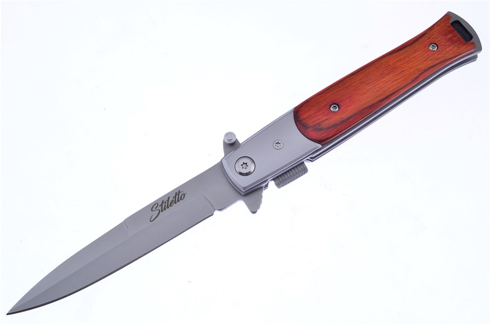 We think you're going to like this 4 7/8" Pakkawood Snapshot Stiletto! It has Thumb Stud and Stainless Steel Blade and you need to pop this in your cart now while supplies last!