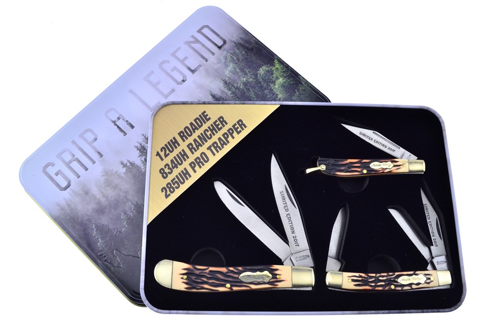 Introducing the Imitation Stag Composite Gift Set by Uncle Henry. It has Collectors' Tin and no one can resist, so get yours while you can! Set includes Uncle Henry item numbers 12UH, 834UH, and 285UH.