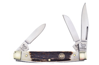 Here's a set of knives no collector will want to miss. You'll get one of the Wood Stockmans, one of the 4" Zebra Wood Whittlers, featuring Brass Bolsters, one of the 3 1/2" Zebra Wood Saddlehorns with Brass Pins, and one of the 7" Zebra Wood Skinners with Brass Pins. Not all of these components will stay in stock, so throw this in your shopping cart now!