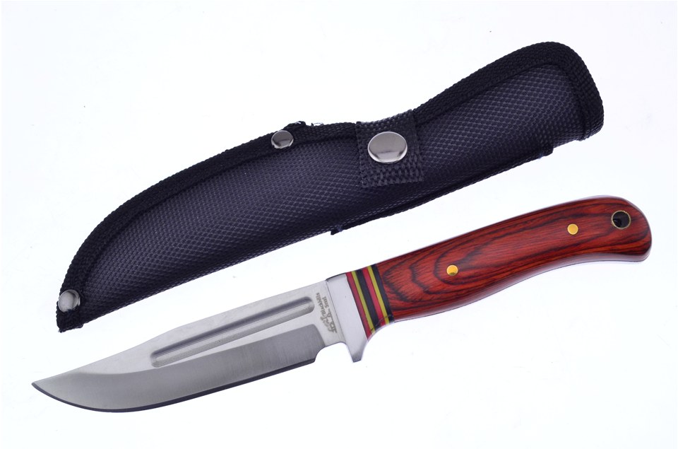 Here's a set of knives no collector will want to miss. You'll receive one of the 8" Camo Composite Skinners, one of the 7" Root Wood Skinners, one of the 9" Orange Camo Composite Bowies, featuring Full Tang Construction, one of the 9 3/4" Frost Wood Hunters, one of the 9" Pakkawood Skinners, one of the 9" Green Pakkawood Skinners, and so much more! You won't find a lower price anywhere!