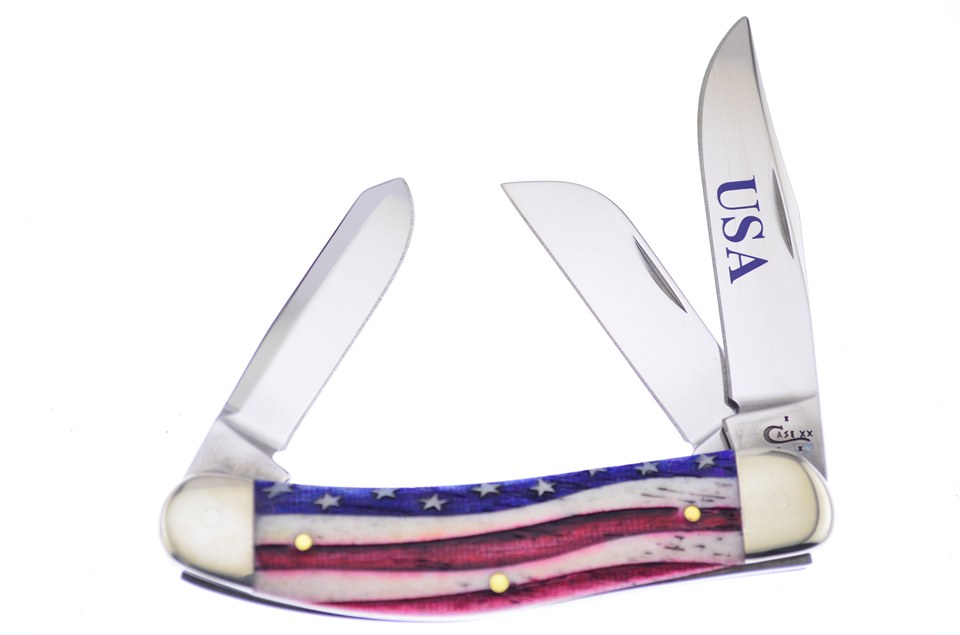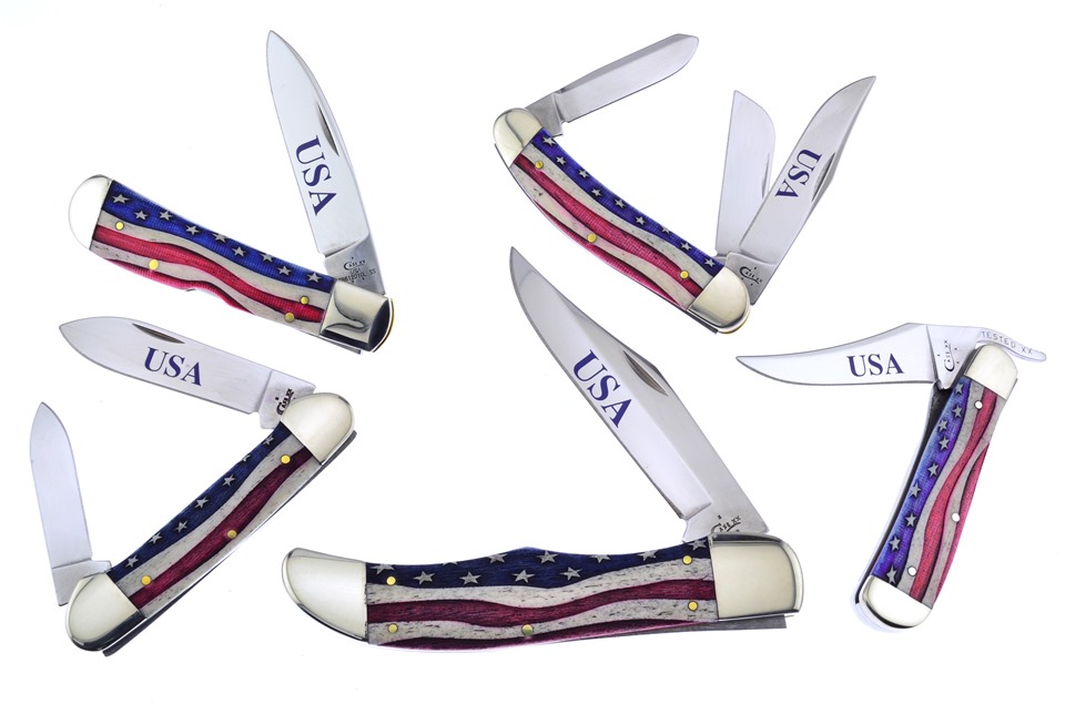 This set by Case is a great addition to your collection! You'll get one of the 4 1/8" Star Spangled Banner Corelon® Tribal Locks, one of the 3 5/8" Star Spangled Banner Corelon® Canoes, one of the 5 1/4" Star Spangled Banner Corelon® Folding Hunters with Stainless Steel Blade, one of the 4 1/4" Star Spangled Banner Bone Russlocks, and one of the 3 7/8" Star Spangled Banner Bone Sowbellys with Printed Blade. You won't find a lower price anywhere!