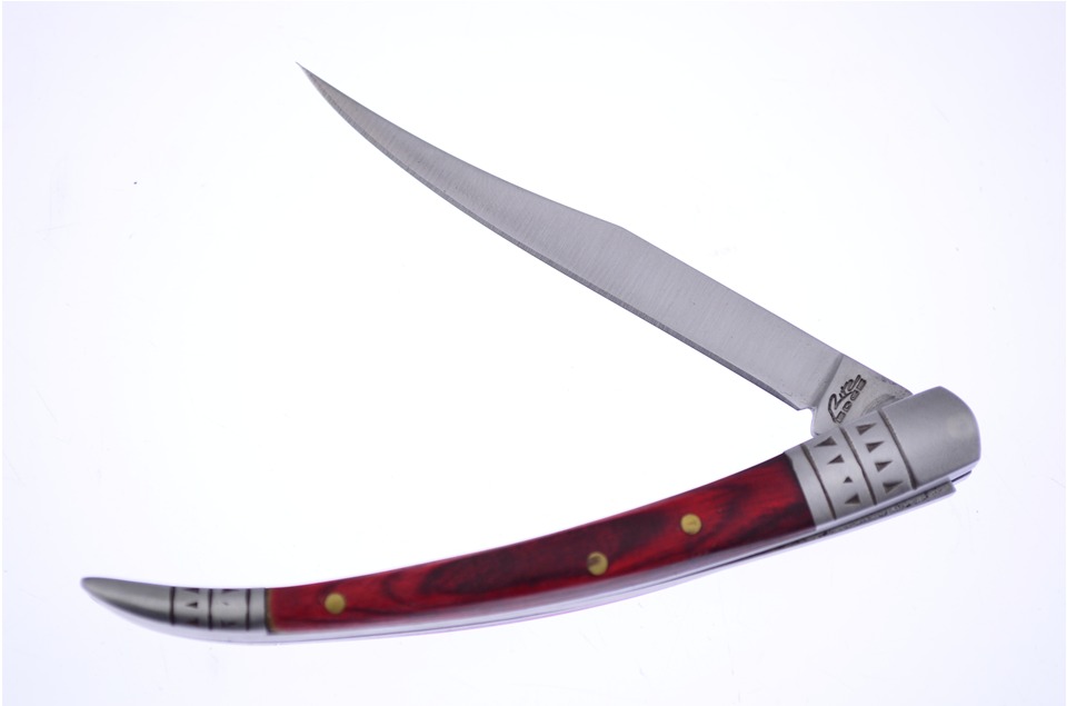 Customers can't get enough of the Rite Edge 4" Pakka Wood Toothpick! With Brass Pins and Stainless Steel Bolsters, no one can resist, so get yours while you can!