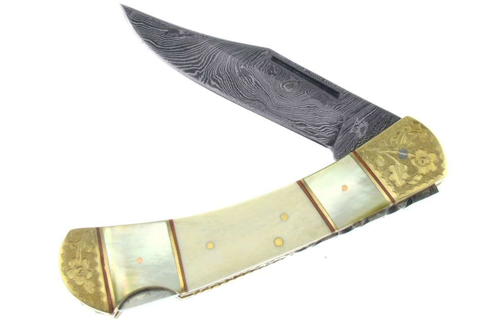 We think you're going to like this Pearl/White Smoothbone Combination Folder! With details like Decorative Inlays, Damascus Blade, and Lockback, this is going to be flying off the shelves, so don't miss your chance to get one!