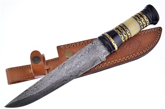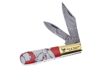 White Smoothbone & Mother Of Pearl Damscus Blade Lockback