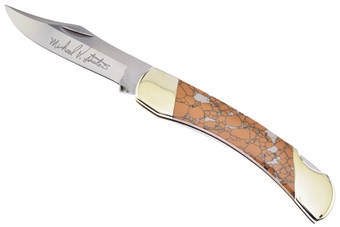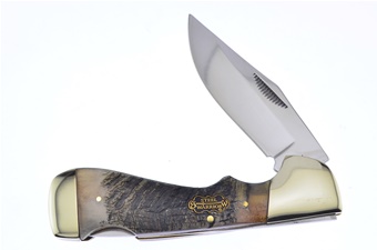 White Smoothbone & Mother Of Pearl Damscus Blade Lockback