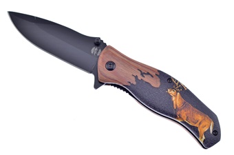 Show Sample Deer Pakkawood Black Stainless Steel Assisted Tactical
