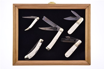 White Smoothbone & Mother Of Pearl Damscus Blade Lockback