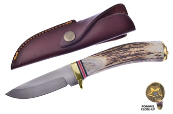 Show Sample Stag Stainless Steel Leather Sheath Skinner