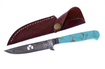 Michael Prater Hen + Rooster Kingman Turquoise Damascus Deer