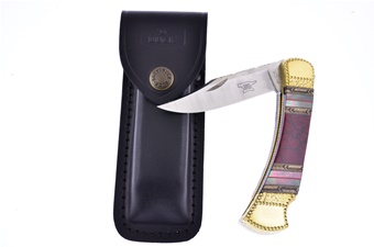 White Smoothbone & Mother Of Pearl Damscus Blade Lockback