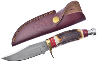 Show Sample Torched Stag Stainless Steel Blade Leather Sheath