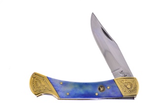 Blue Smoothbone Bear Claw Stainless Steel Lock Back