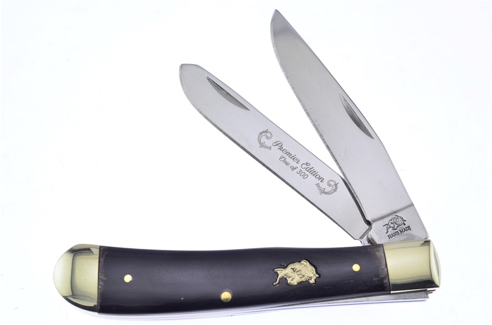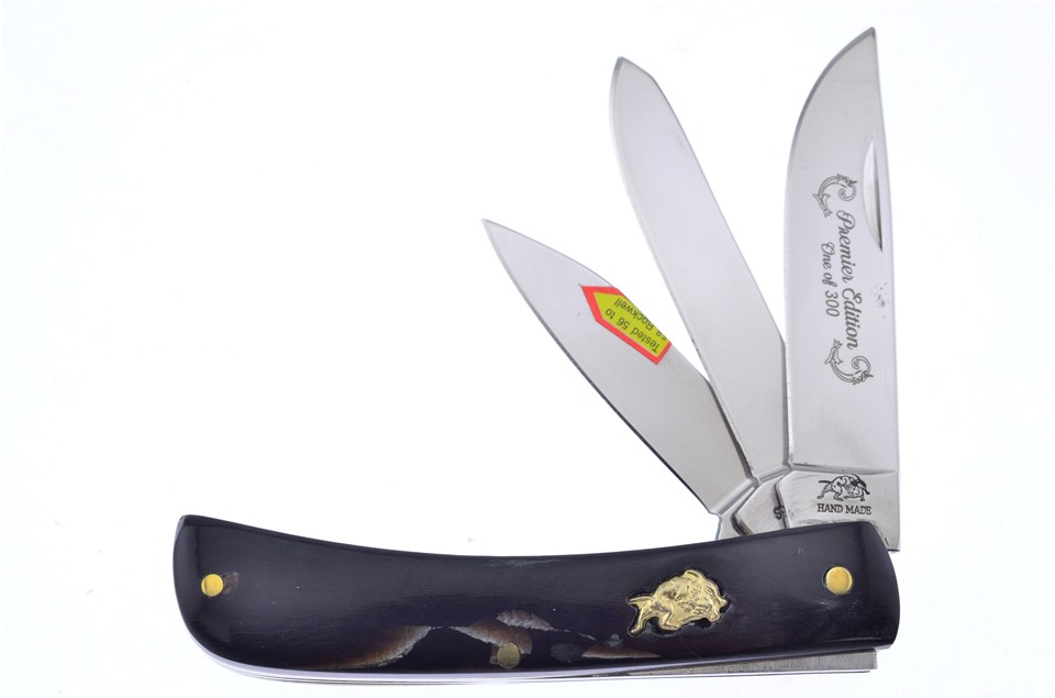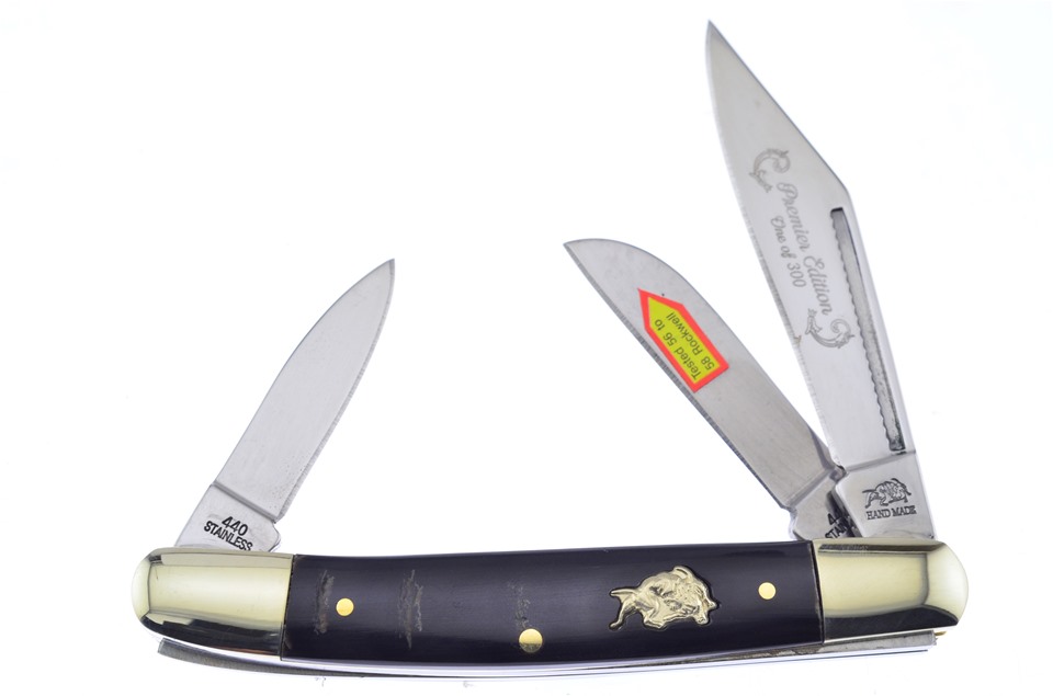 Just the thing for knife collectors everywhere. You'll get one of the Ox Horn Powder Horns, one of the 3 1/4" Cape Buffalo Horn Locking Copperheads with Rockwell Hardness 56-58, one of the 2 7/8" Cape Buffalo Horn Little Peanuts, featuring Thumbnail Pull, one of the 4 1/4" Cape Buffalo Horn Trappers, featuring Stainless Steel Blade, one of the 3" Cape Buffalo Horn Small Toothpicks, one of the 4" Cape Buffalo Horn Wranglers, featuring Thumbnail Pull, and so much more! You won't find a lower price anywhere!