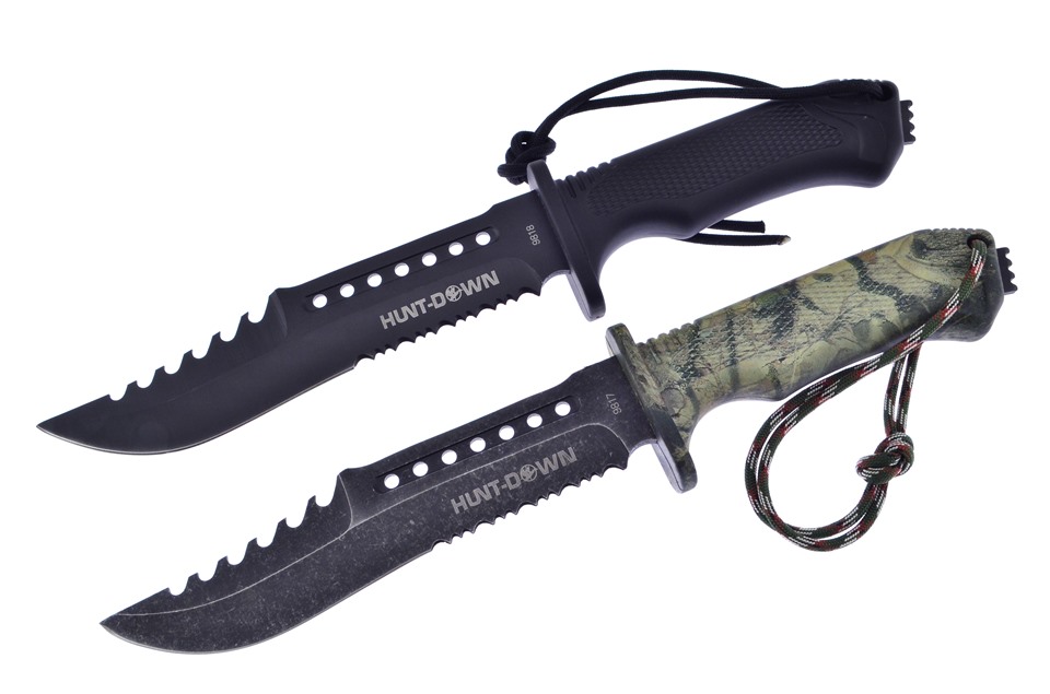 Here's a value you really don't want to miss. You'll receive one of the 12" Camo Composite Camp Knives and one of the 12" Black Composite Camp Knives, featuring Sawtooth Spine. Sets like these go fast, so get yours while you can!