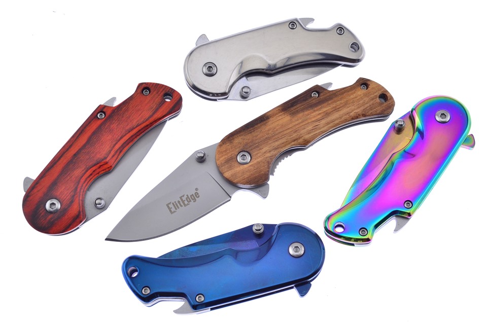 Here's a set of knives no collector will want to miss. Included in this set is one of the 3 1/2" Blue Titanium Snapshot Tacticals, one of the 3 1/2" Wood Snapshot Tacticals, one of the 3 1/2" Wood Snapshot Tacticals, one of the 3 1/2" Rainbow Titanium Snapshot Tacticals, featuring Assisted Opening, and one of the 3 1/2" Silver Anodized Aluminum Snapshot Tacticals, featuring Thumb Stud. You won't find a lower price anywhere!