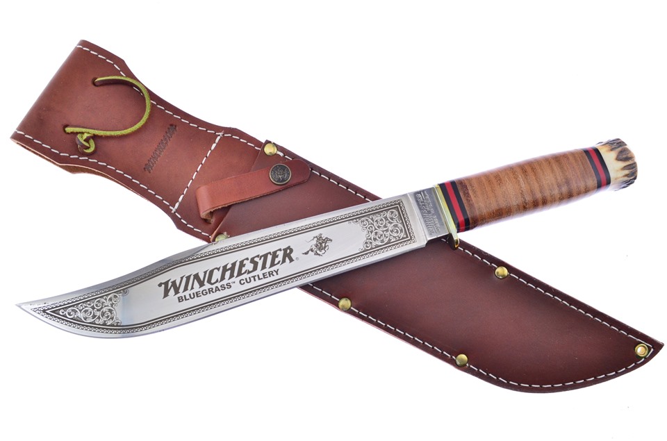 Here's a set of knives no collector will want to miss. You'll get one of the 15" Stag / Stacked Leather Combination Bowies and one of the 15 1/2" Wood Displays. Not all of these components will stay in stock, so throw this in your shopping cart now!