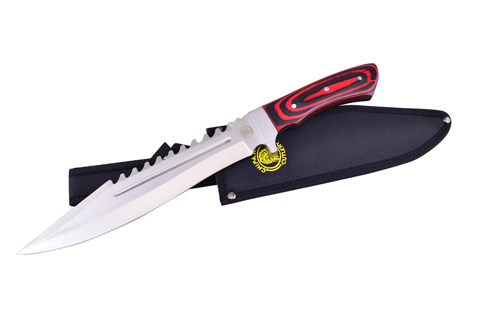 15.5" Black/Red Pakkawood Bowie w/Sheath