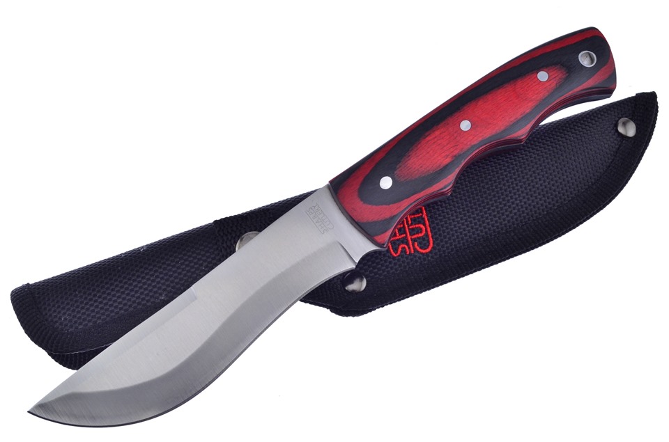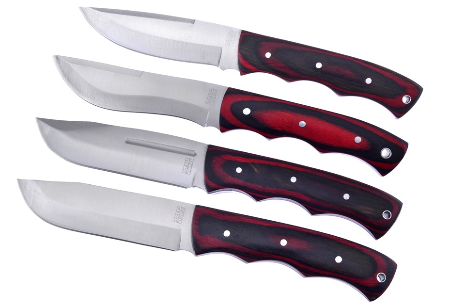 Here is a set of Sharps Cutlery knives you don't want to miss! You'll get one of the 9" Black/Red Pakkawood Hunters, one of the 9" Black/Red Pakkawood Bowies with Ergonomic Handle, one of the 9" Black/Red Pakkawood Bowies, and one of the 9" Black/Red Pakkawood Hunters. Not all of these components will stay in stock, so throw this in your shopping cart now!
