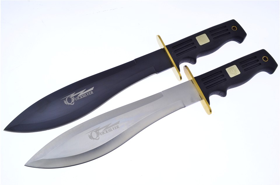 This set by Frost Cutlery is a great addition to your collection! Included in this set is one of the 15" Rubberized Composite Bowies and one of the 15" Rubberized Composite Bowies with Brass Guard. Sets like these go fast, so get yours while you can!
