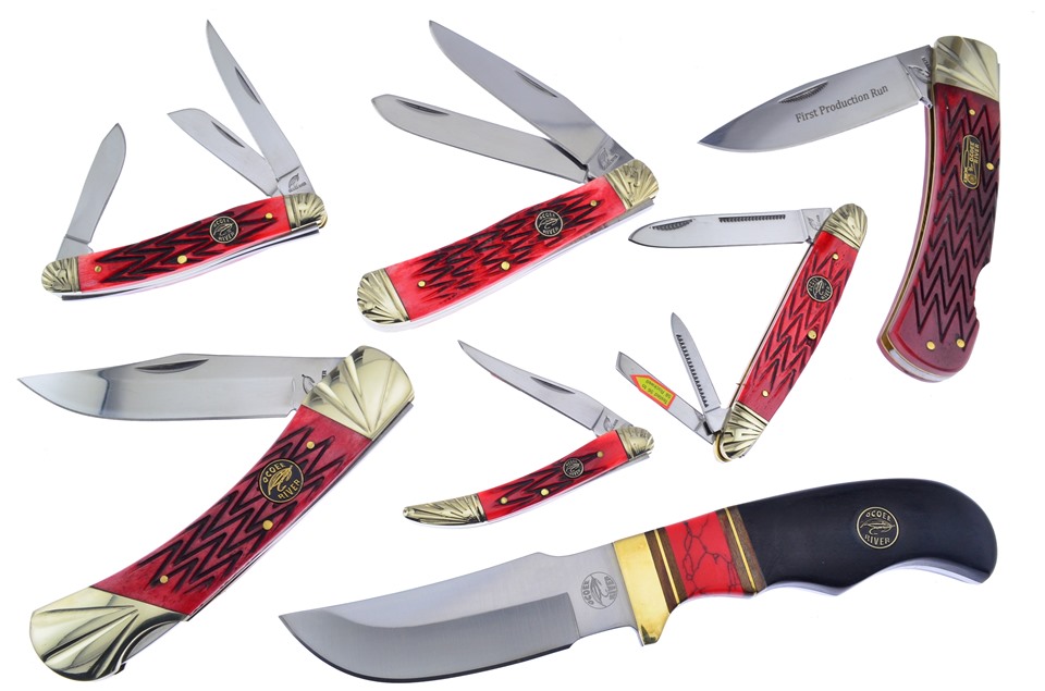 Here's a value you really don't want to miss. You'll receive one of the 4 1/4" Red Jigged Bone Trappers, one of the 3" Red Jigged Bone Small Toothpicks with Brass Pins, one of the 8" Wood/Turquoise Combination Skinners, one of the 3 1/2" Red Jigged Bone Stockmans, featuring Brass Pins, one of the 4" Red Jigged Bone Whittlers with Scalloped Bolsters, one of the 3 1/2" Red Jigged Bone Saddlehorns with Scalloped Bolsters, and so much more! Not all of these components will stay in stock, so throw this in your shopping cart now!