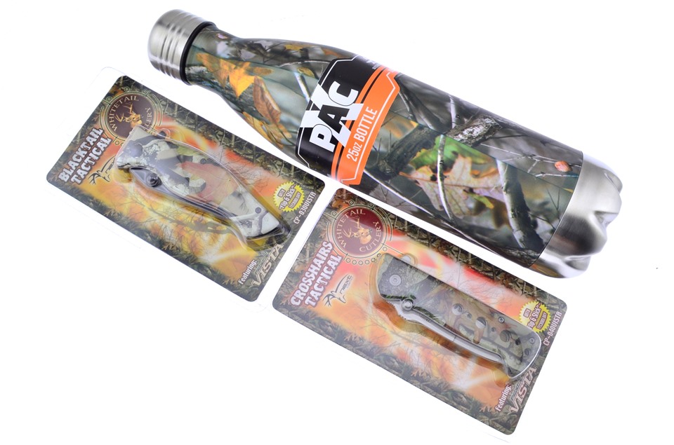 This set is a great addition to any collection. You'll get one of the 4 5/8" Camo Composite Tactical Folders, one of the 4 1/4" Camo Composite Tactical Folders, and one of the Thermos Mugs, featuring Double Wall Stainless Steel. Sets like these go fast, so get yours while you can!