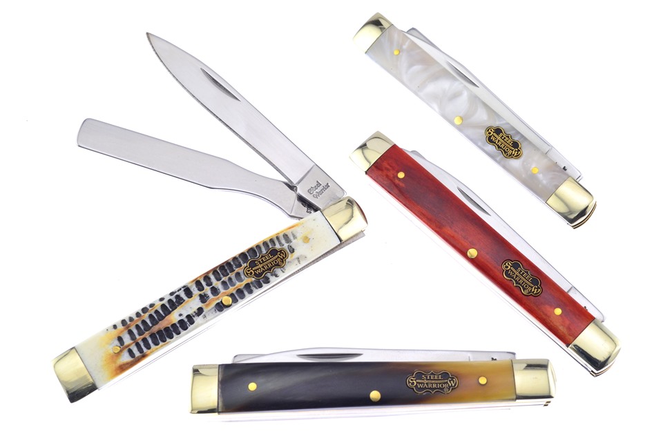 This set is a great addition to any collection. You'll get one of the 3 3/4" Cracked Ice Composite Doctor's Knives, one of the 3 3/4" Orange Smooth Bone Doctor's Knives, featuring Brass Pins, one of the 3 3/4" Ox Horn Doctor's Knives, and one of the 3 3/4" Winter Aged Bone Doctor's Knives, featuring Stainless Steel Blade. Not all of these components will stay in stock, so throw this in your shopping cart now!