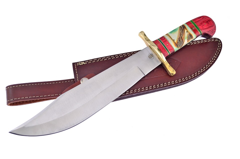 Chipaway Cutlery brings you this 16" Wood/Bone Combination Bowie. With details like Brass Spacers, Brass Guard, and Stainless Steel Blade, no one can resist, so get yours while you can!